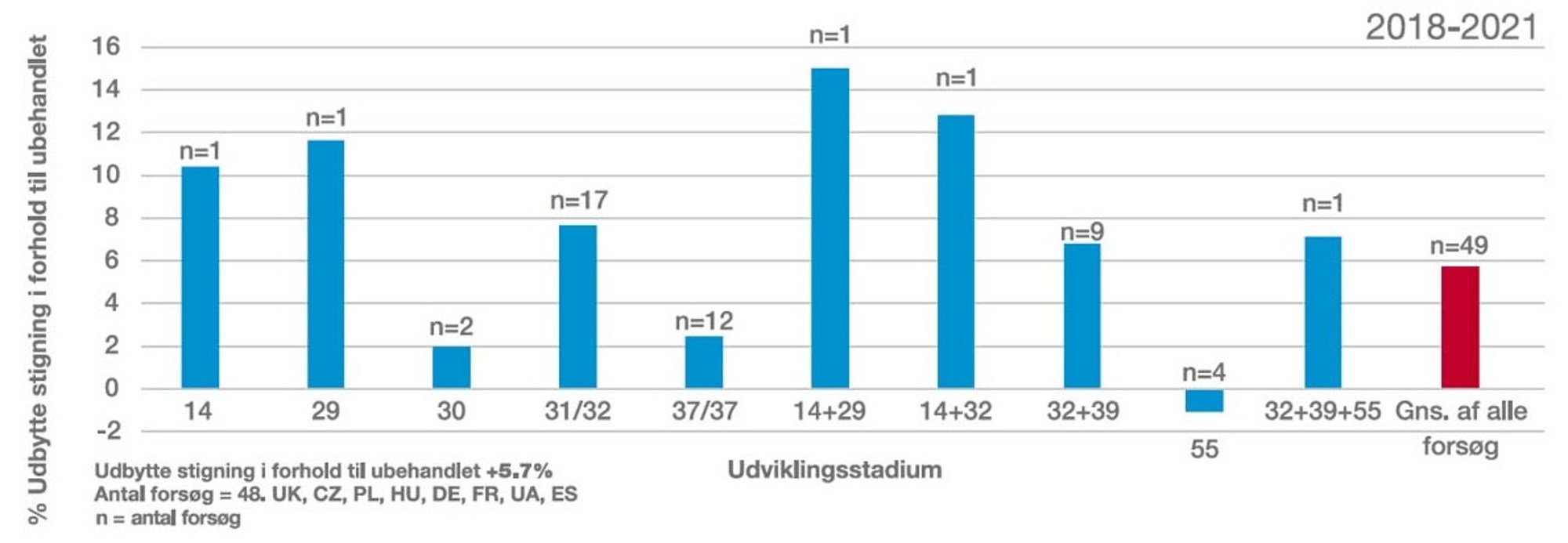 - Øger udbyttet med gns. 5,7% i kornafgrøder