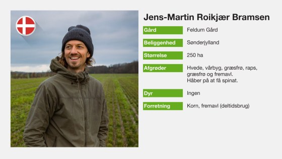 På Feldum Gård i Sønderjylland har Jens-Martin 250ha med planteavl, herunder fremavl. 155ha er hans egen jord, mens de resterende er forpagtet. På trods af gårdens størrelse og afgrødesammensætningen, er hans tid som landmand dog kun på deltid. Jens-Martin arbejder nemlig i vinterperioden og frem til 1. april som akademisk medarbejder på Københavns Universitetsafdeling for Fødevare- og ressourceøkonomi. Jens-Martin går meget op i at få det bedst mulige sædskifte, og derfor er hans marker nøje skemalagt. Han arbejder hele tiden på at blive bedre og optimere sin planteavl.